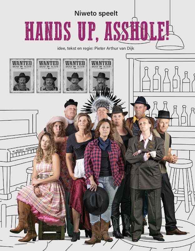 “Hands up, asshole!” is een western vol humor, vaart en muziek, die op een verrassende manier actuele thema’s in een ander perspectief zet. NIWETO zet hiermee een eigentijds stuk op de planken dat een breed publiek aanspreekt, vermaakt en aan het denken zet. De voorstelling is al improviserend tot stand gekomen, een nieuw concept, de verbeelding staat centraal.