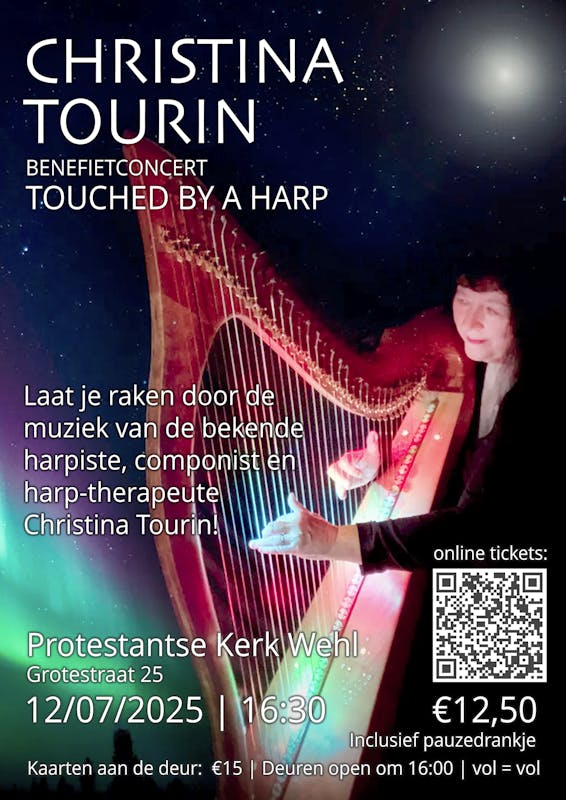 - zaterdag 12 juli een héle bijzonder andere gast uit de Verenigde Staten: Christina Tourin - Touched by a Harp om 16.30 uur.